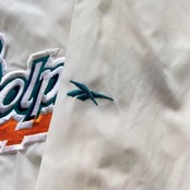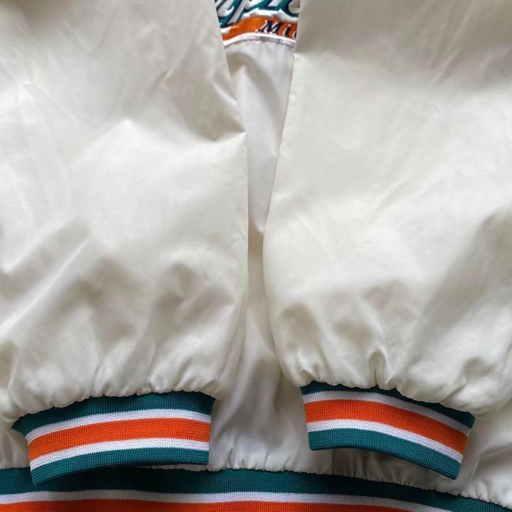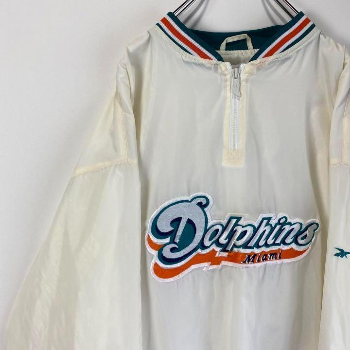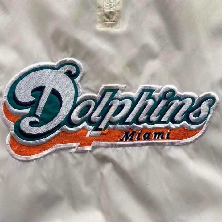 Miami Dolphins(マイアミ・ドルフィンズ)の刺繍ロゴ ハーフジップ ナイロンプルオーバージャケットです。